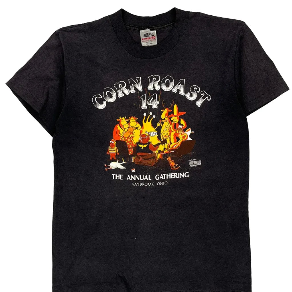 Corn Roast 14 The Annual Gathering Saybrook, Ohio Oneita Single Stitch T-Shirt - Large Black Polyester Blend