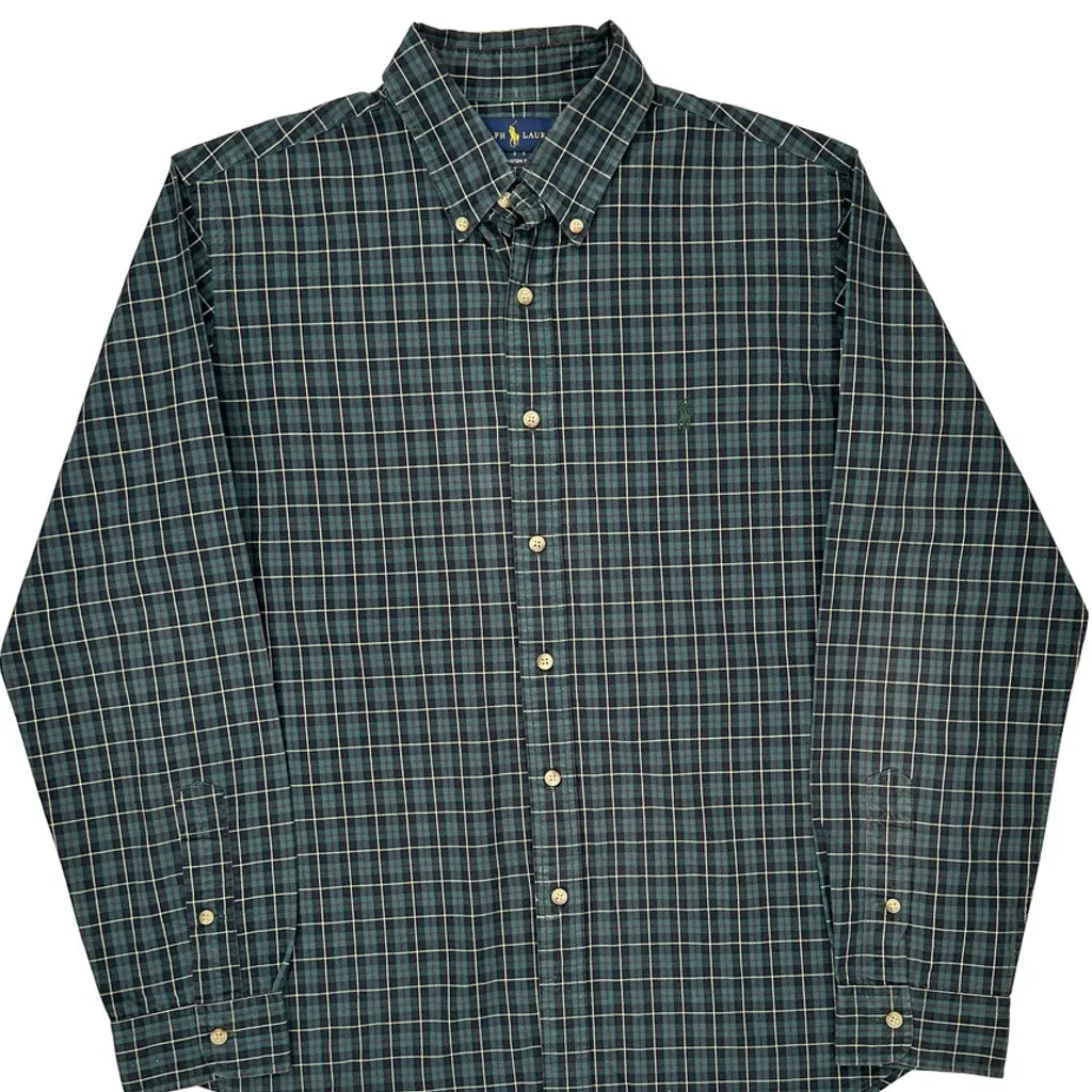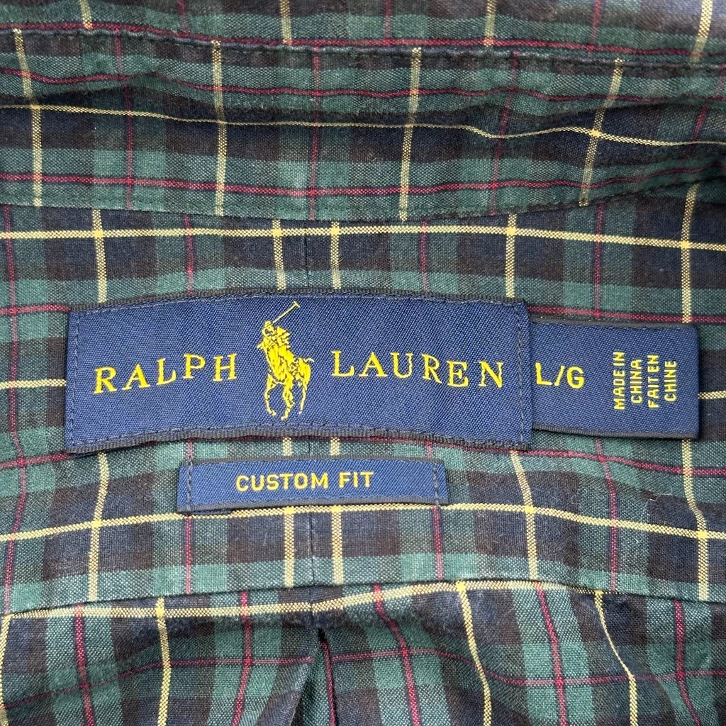 Custom Fit Ralph Lauren Checked Shirt - Large Green Cotton