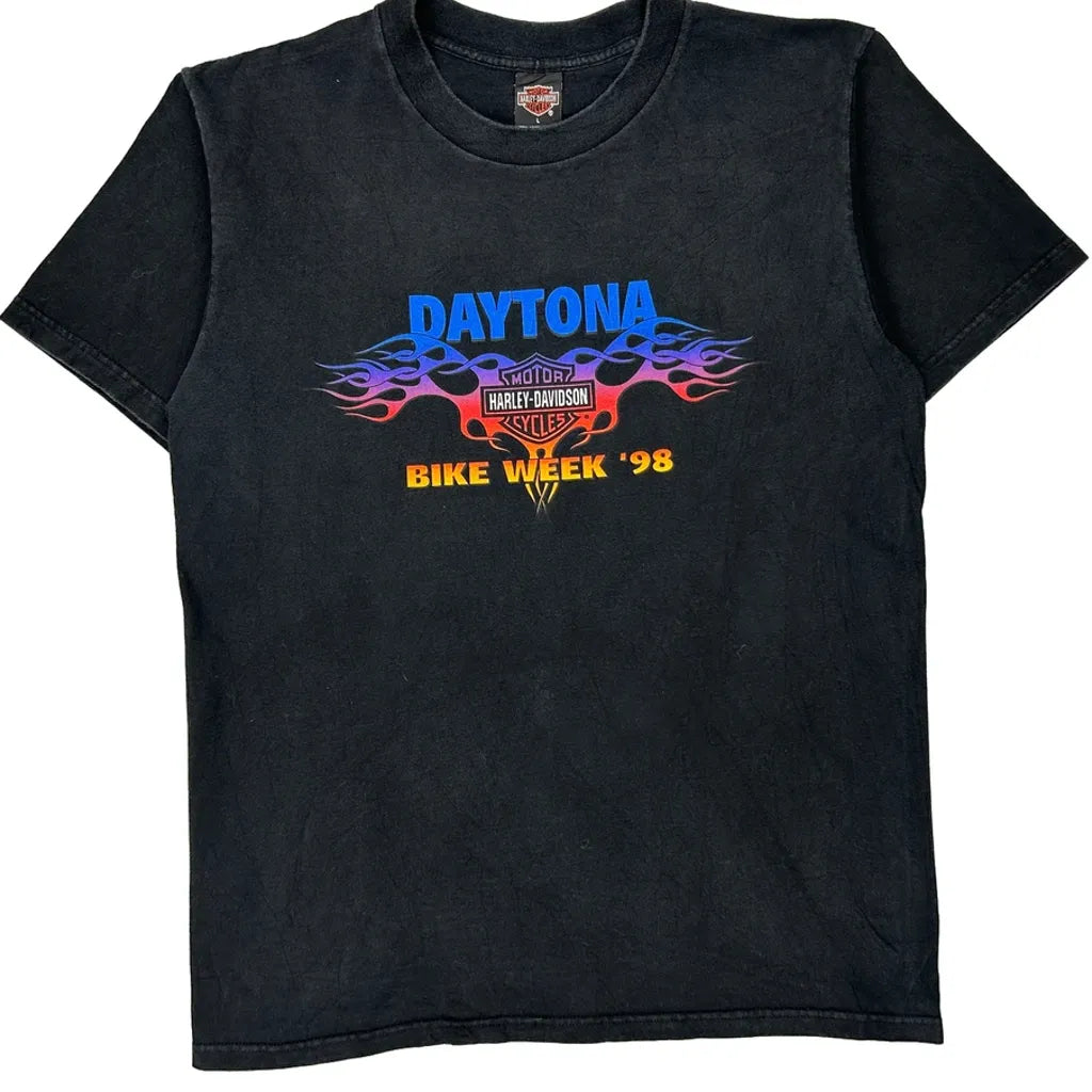 Daytona Bike Week '98 Harley Davidson Graphic T-Shirt - Large Black Cotton