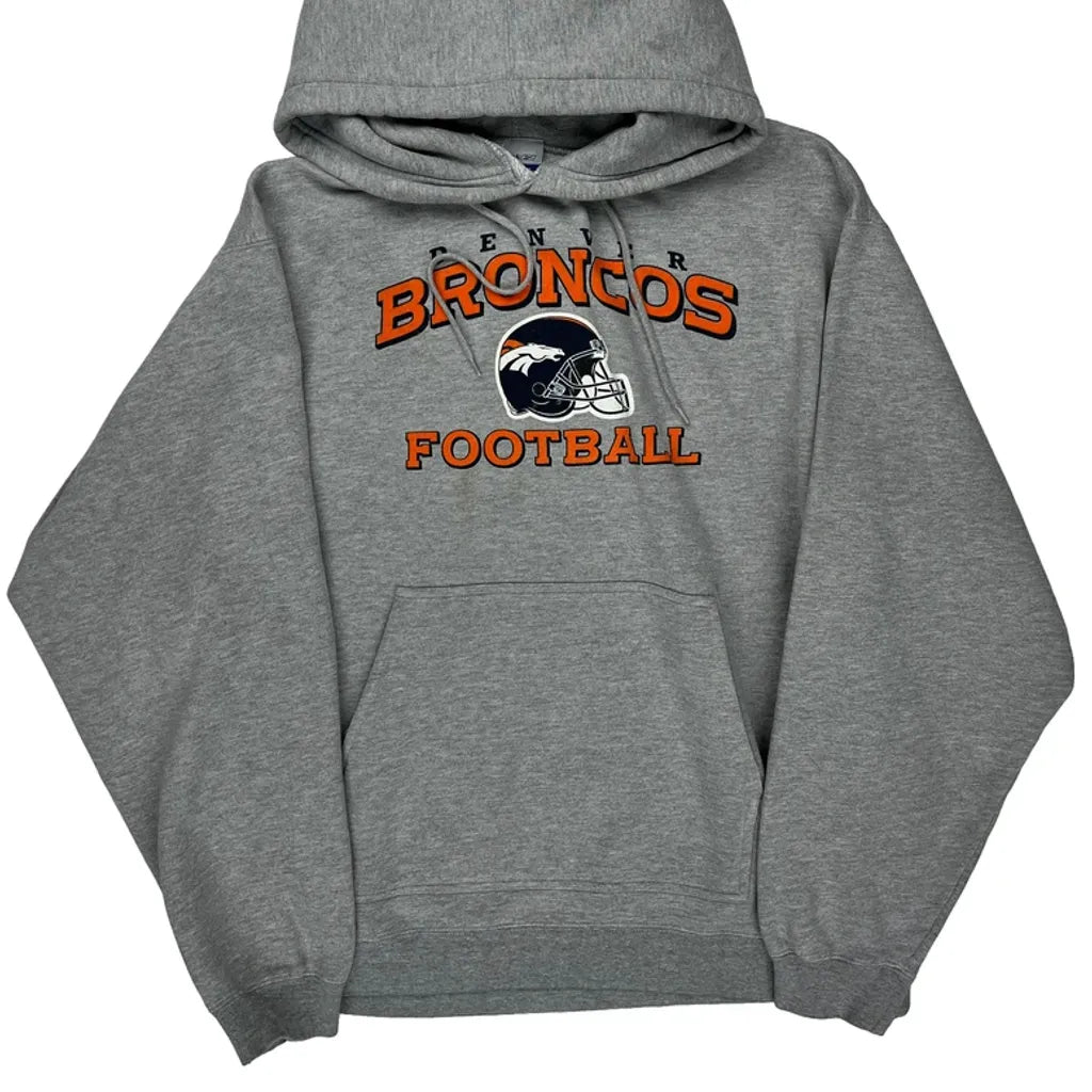 Denver Broncos Reebok Football Hoodie - Large Grey Cotton Blend