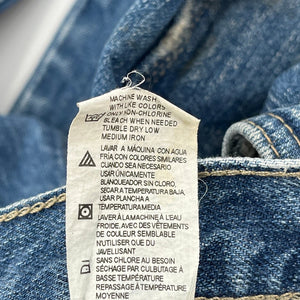 Dickies Carpenter Jeans, fit a 34″ Waist and 32″ inseam.