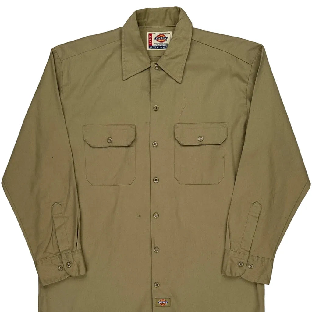 Dickies Shirt - Large Khaki Polyester Blend