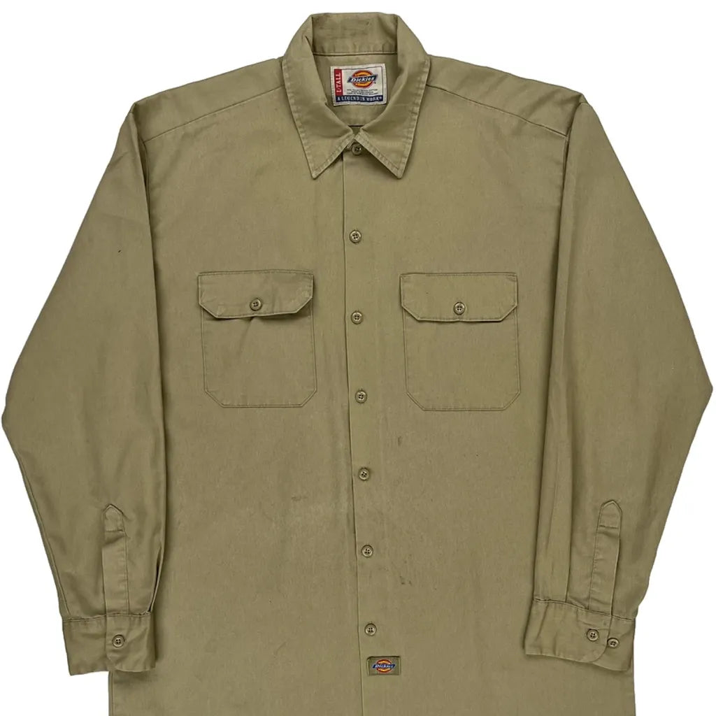 Dickies Shirt - Large Khaki Polyester Blend