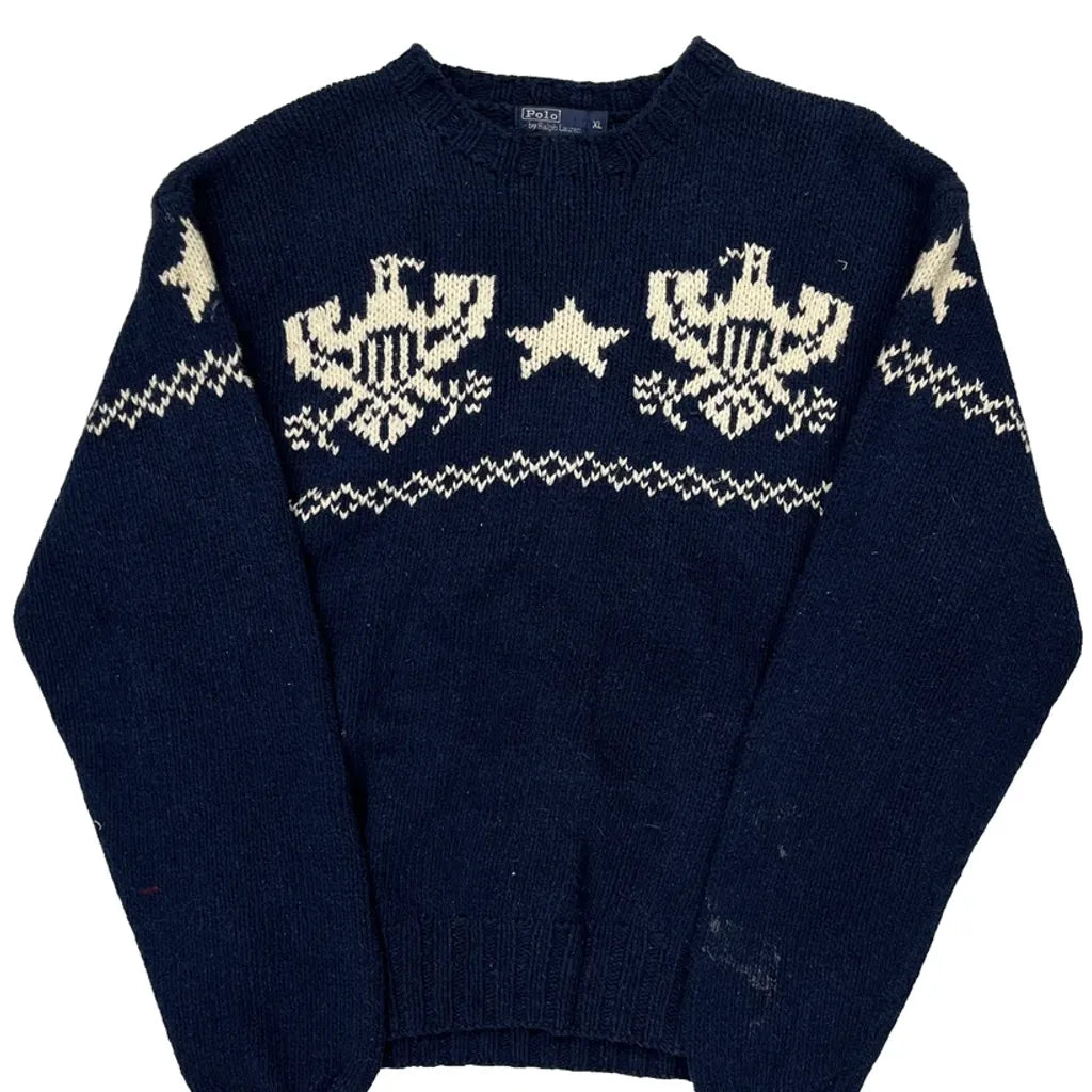 Eagle And Star Pattern Polo By Ralph Lauren Jumper, fits X-Large.