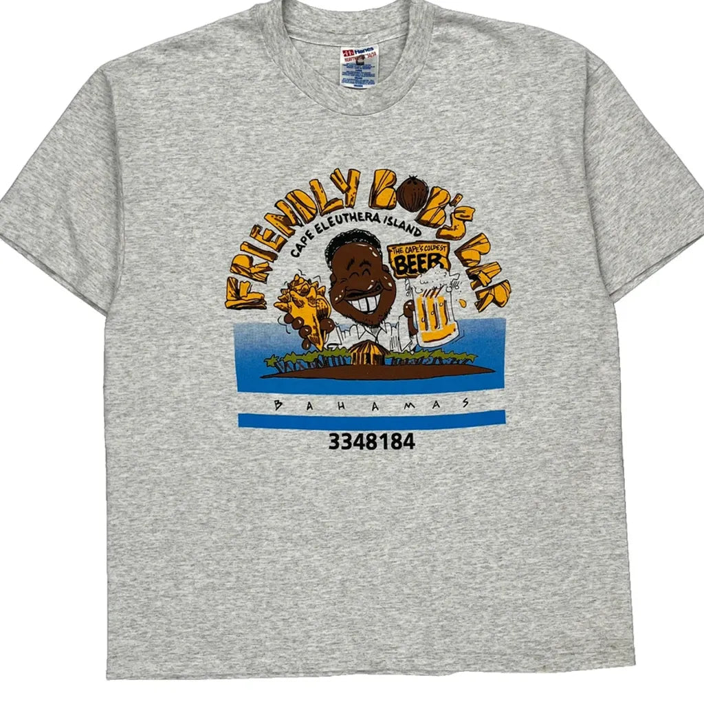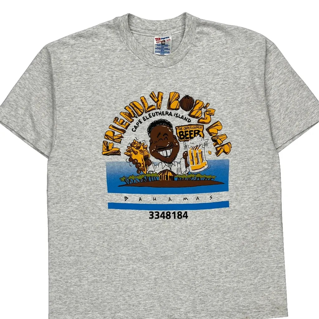 Friendly Bob'S Bar Hanes Single Stitch T-Shirt - Large Grey Cotton Blend