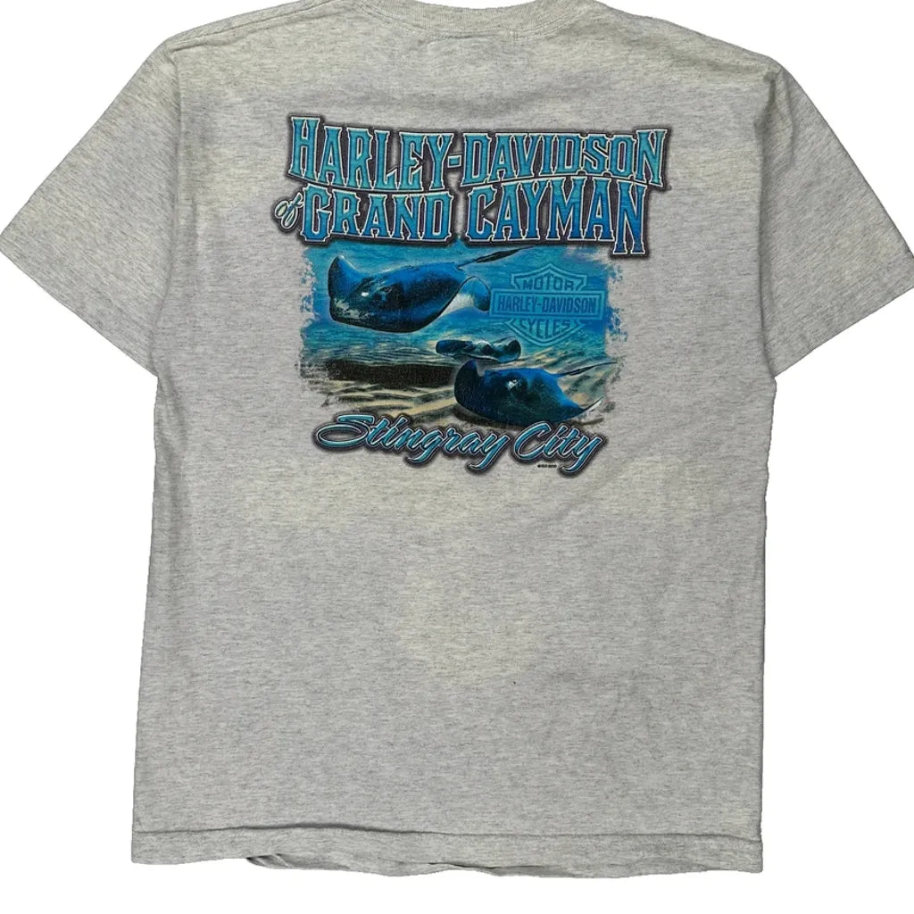 Grand Cayman Harley Davidson Graphic T-Shirt - Medium Grey Cotton