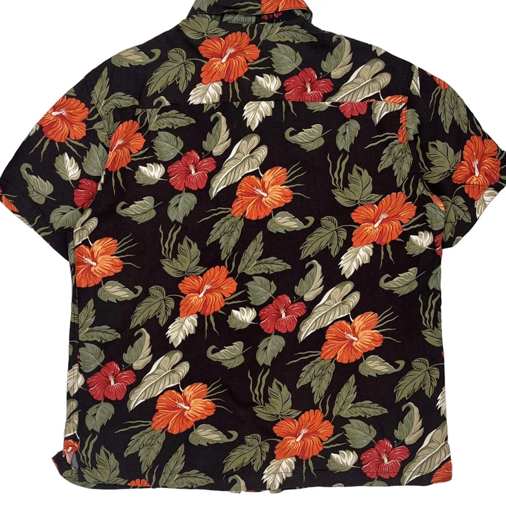 Haggar Floral Hawaiian Shirt - Large Black Cotton