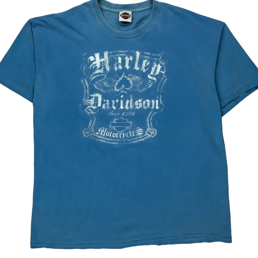 Hall'S 50 Years Anniversary Harley Davidson Graphic T-Shirt - XL Blue Cotton