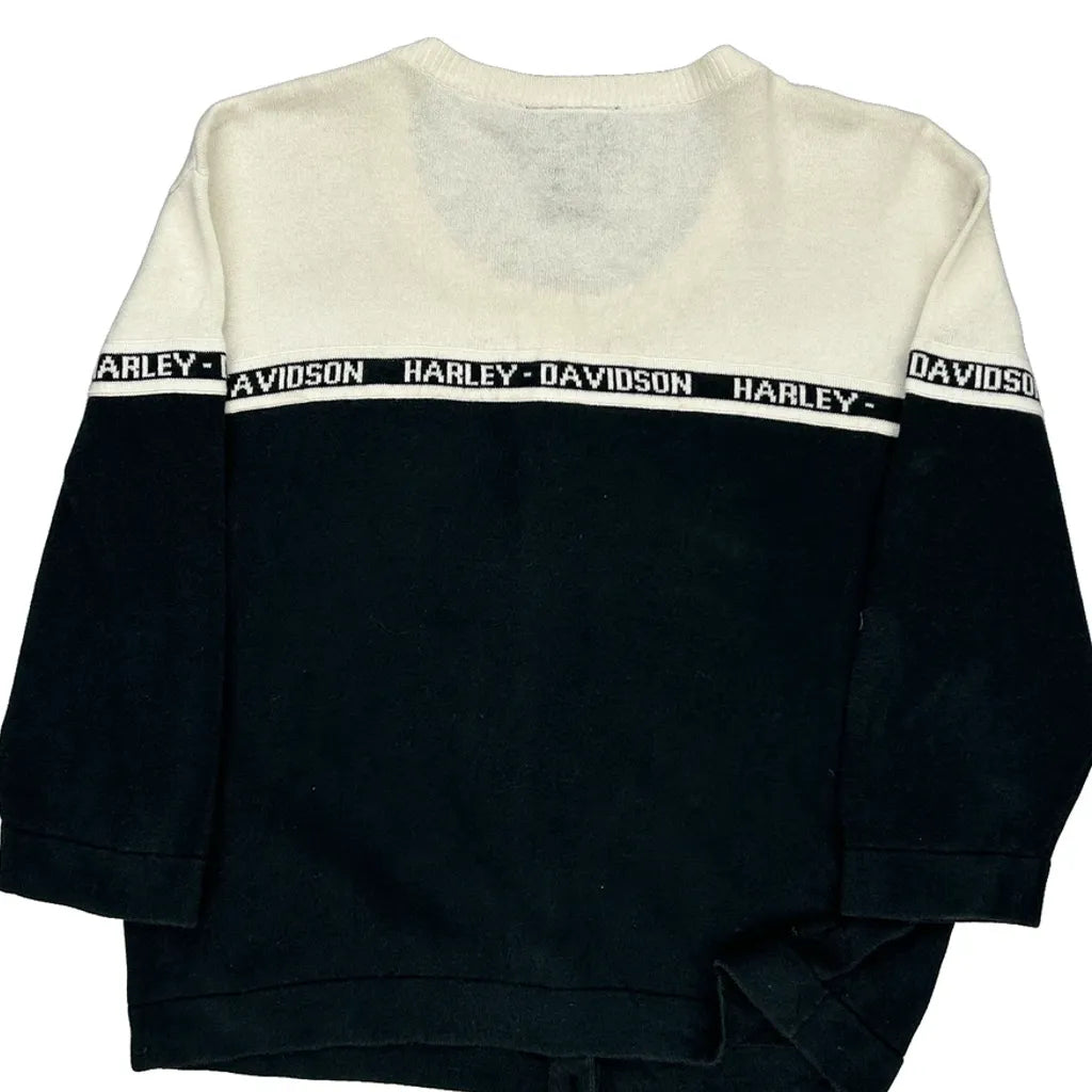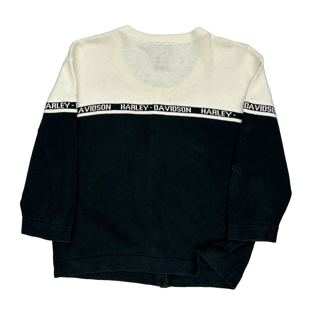 Harley Davidson Spellout Cardigan - Large Black & White Cotton