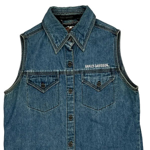 Harley Davidson Denim Gilet - XS Blue Cotton