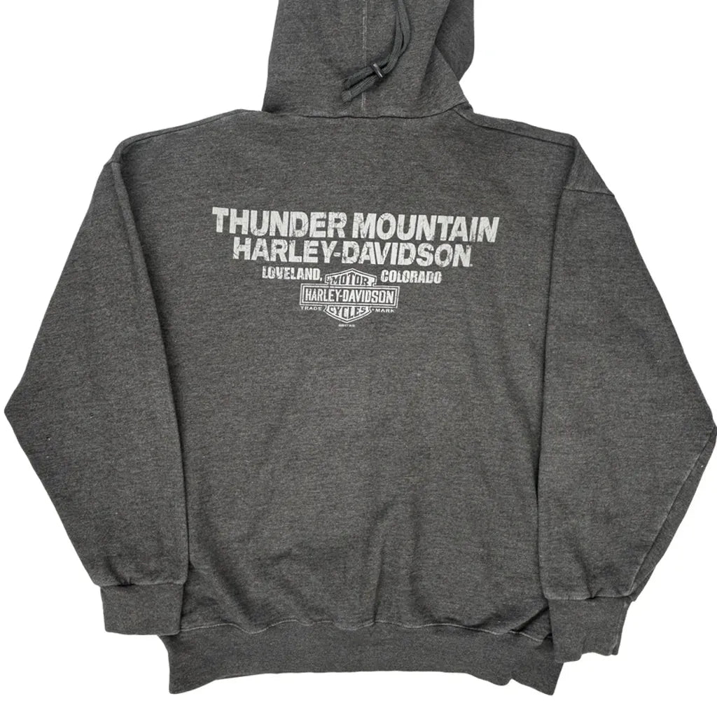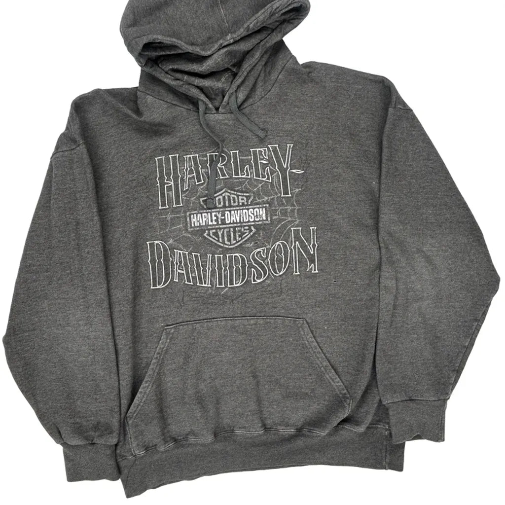 Harley Davidson Graphic Hoodie - Large Grey Cotton Blend