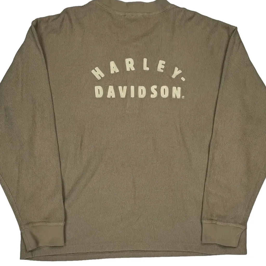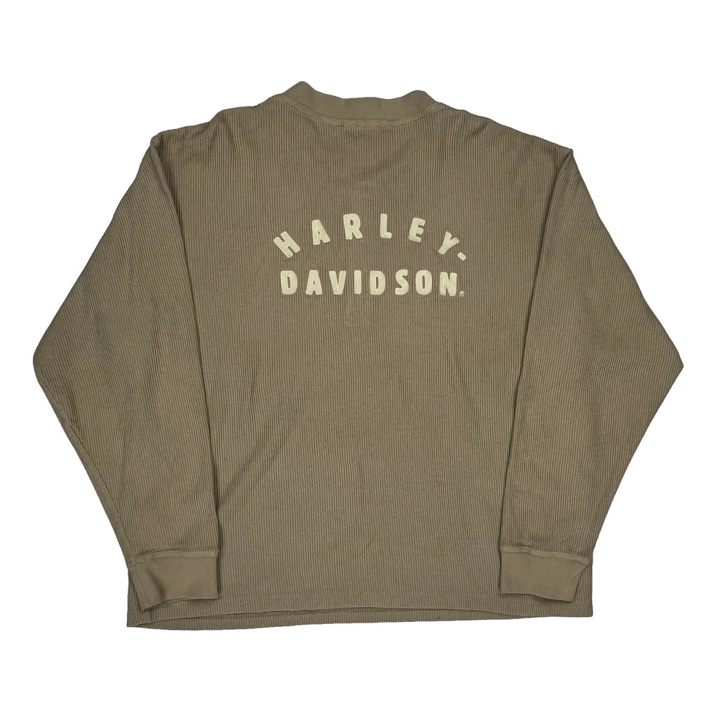 Harley Davidson Long Sleeve T-Shirt - XL Beige Cotton