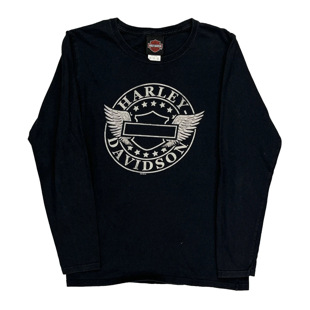 Harley Davidson Graphic Long Sleeve T-Shirt - Medium Black Cotton