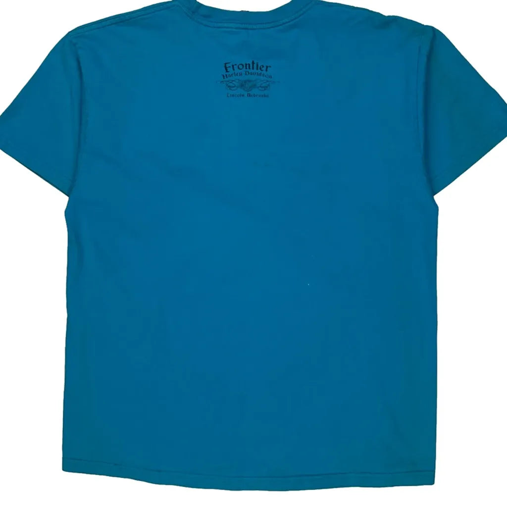 Harley Davidson Graphic T-Shirt - Large Blue Cotton