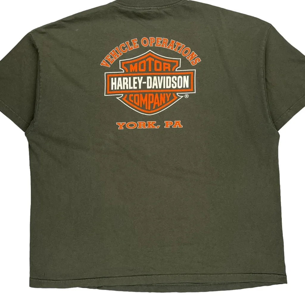 Harley Davidson Graphic T-Shirt - 2XL Green Cotton