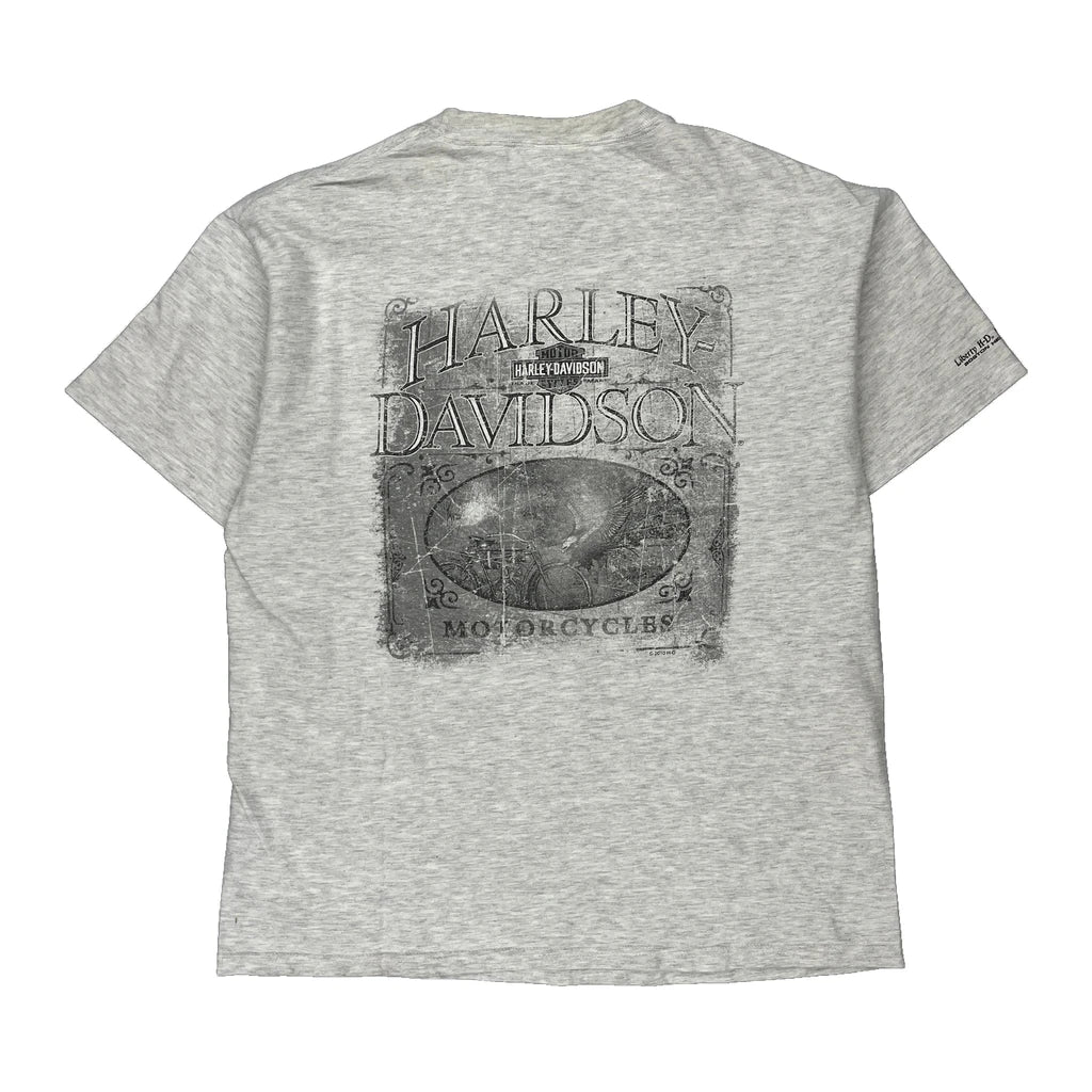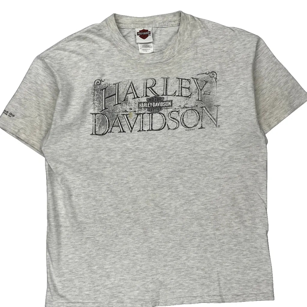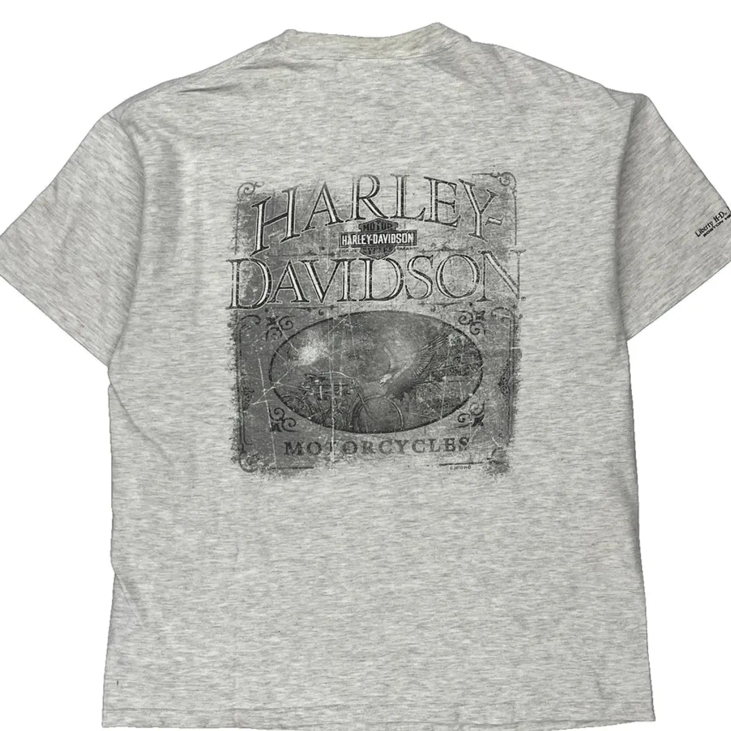 Harley Davidson Graphic T-Shirt - Large Grey Cotton