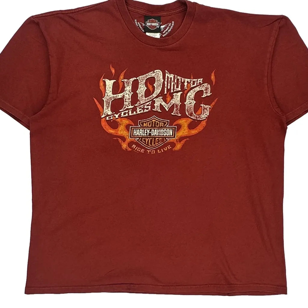 Harley Davidson Graphic T-Shirt - 2XL Red Cotton