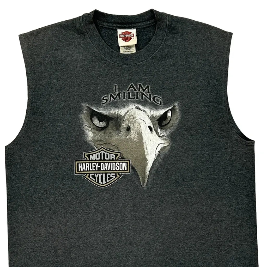 Harley Davidson Vest With Eagle Graphic And 'I Am Smiling' Text