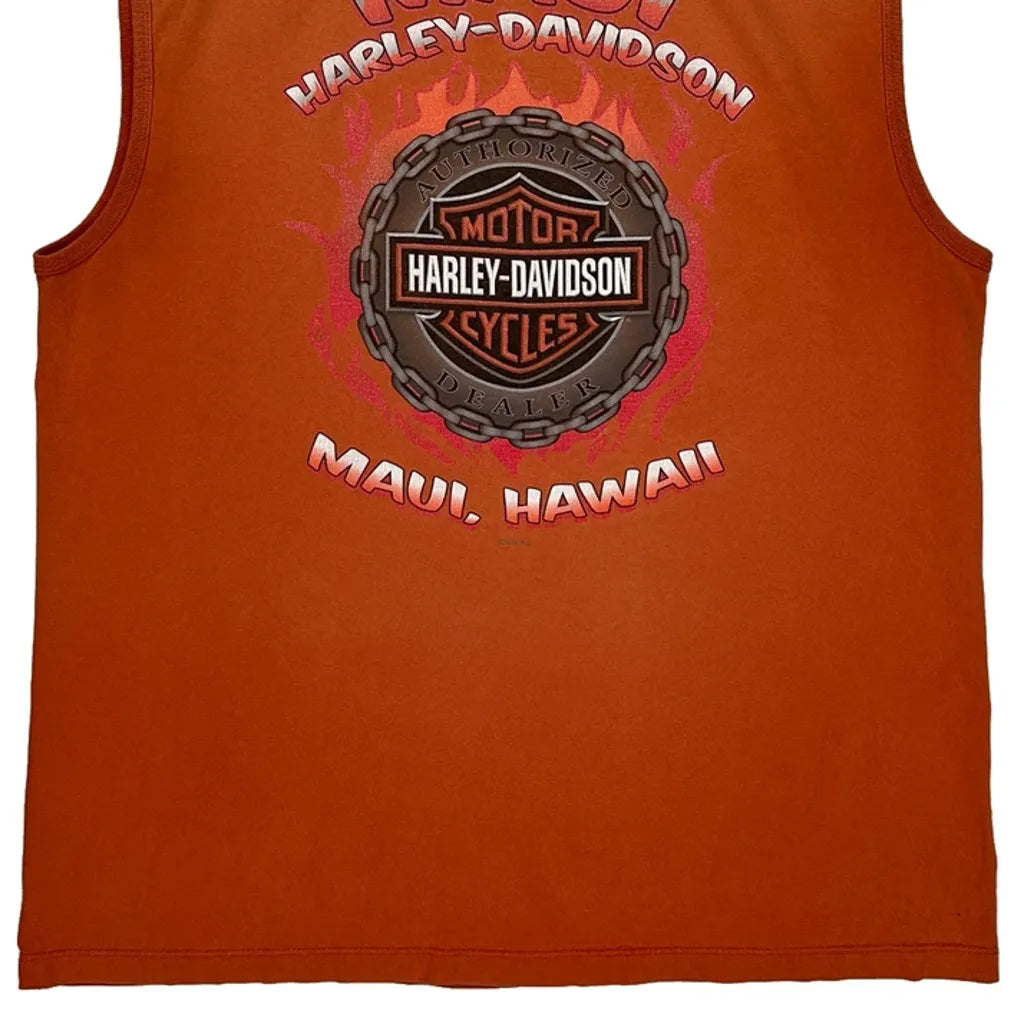 Harley Davidson Graphic Vest - Large Orange Cotton