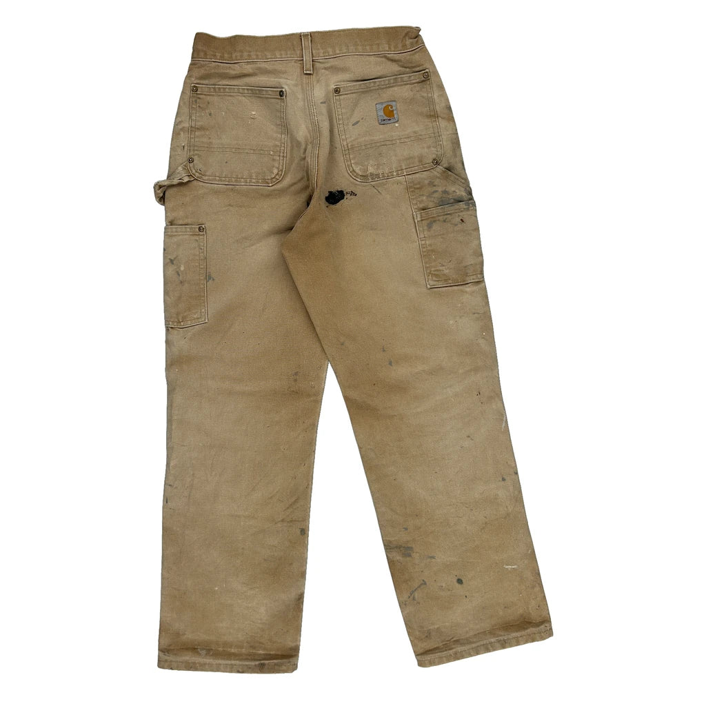 Heavily Worn Carhartt Double Knee Carpenter Trousers - 28W 28L Brown Cotton