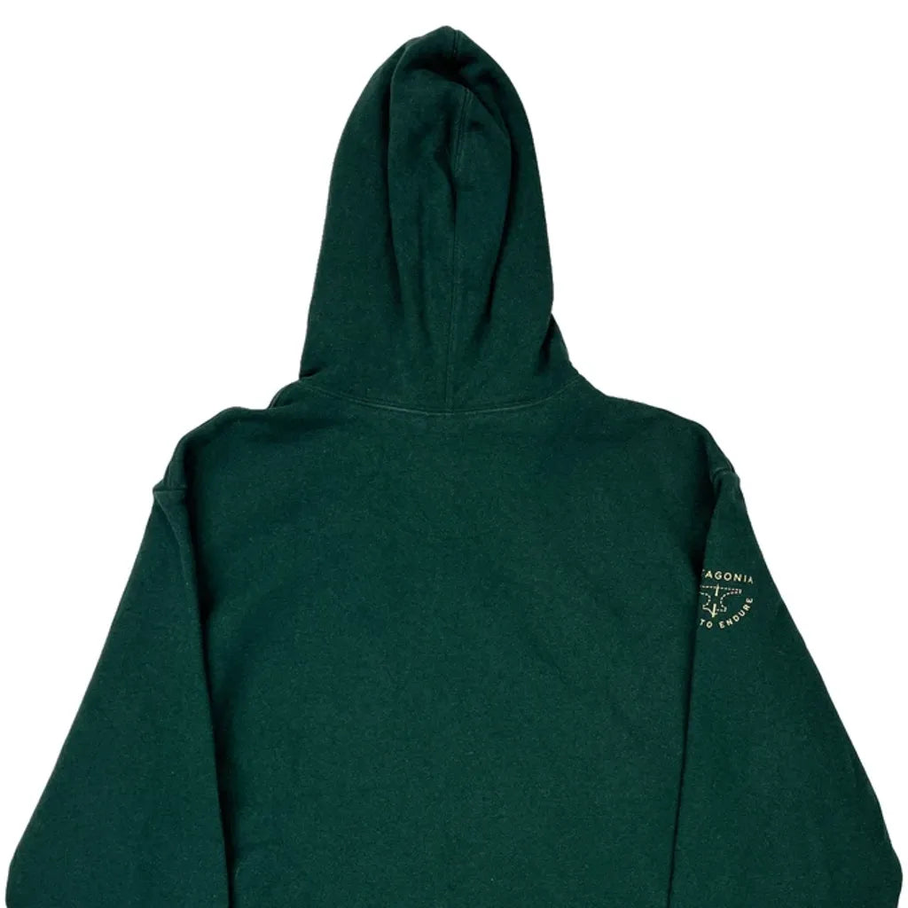 Dark Green Patagonia Hoodie With Front Pocket And Drawstring Hood.