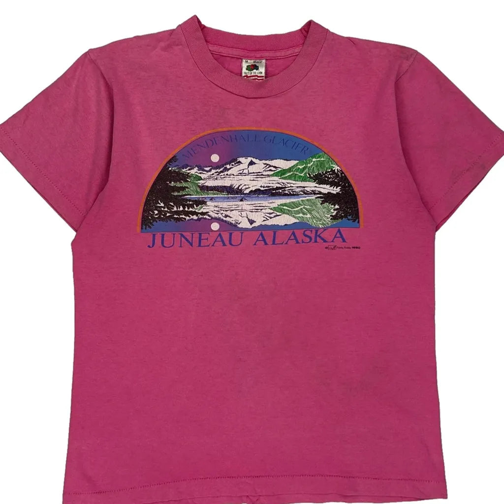 Juneau Alaska Fruit Of The Loom Single Stitch T-Shirt - Medium Pink Cotton