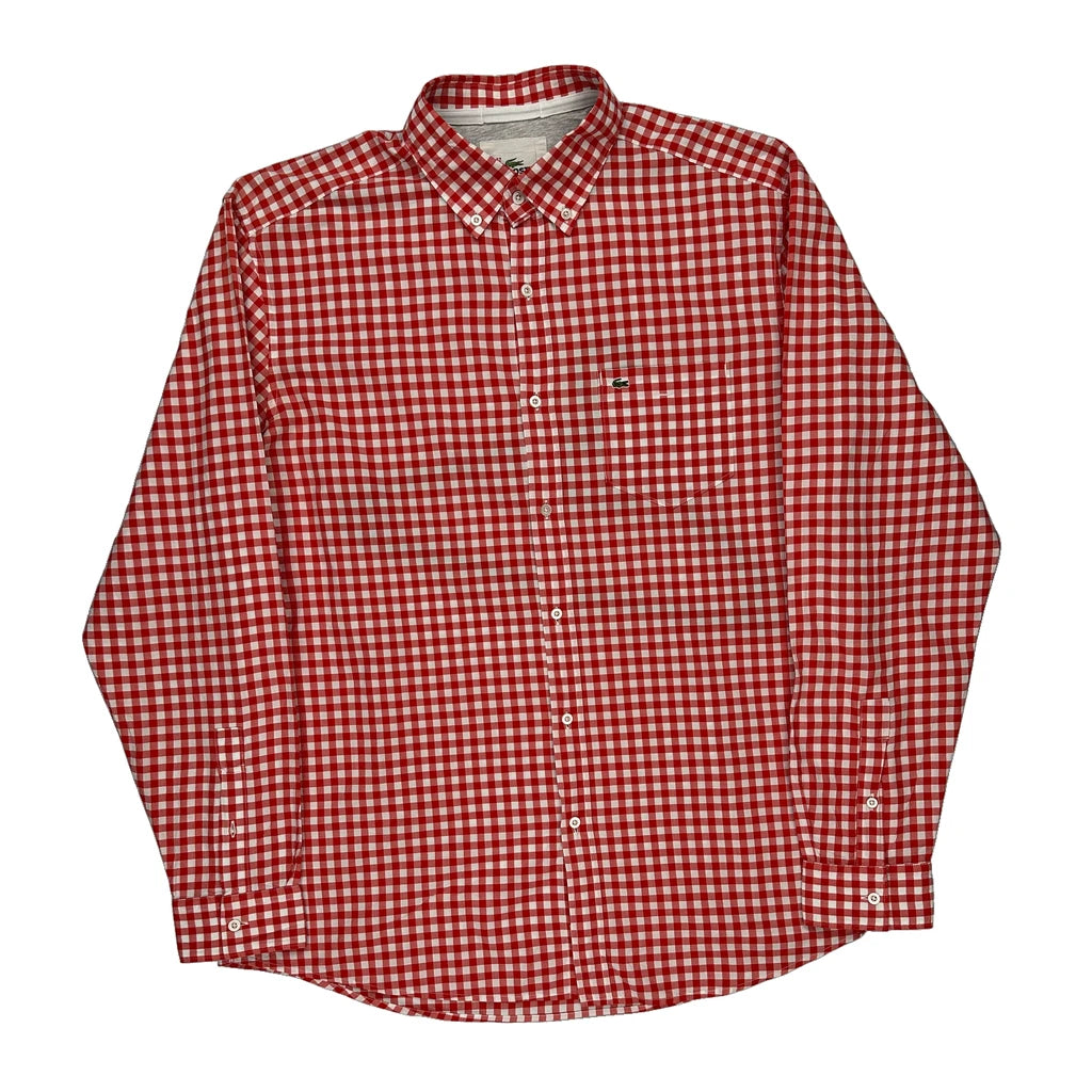 Lacoste Checked Shirt - Large Red Cotton