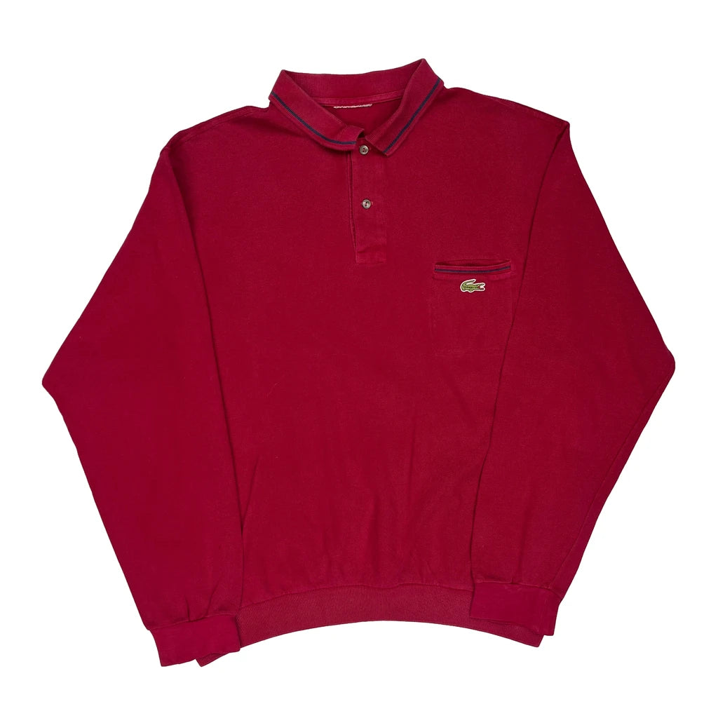 Lacoste Collared Sweatshirt - XL Red Cotton