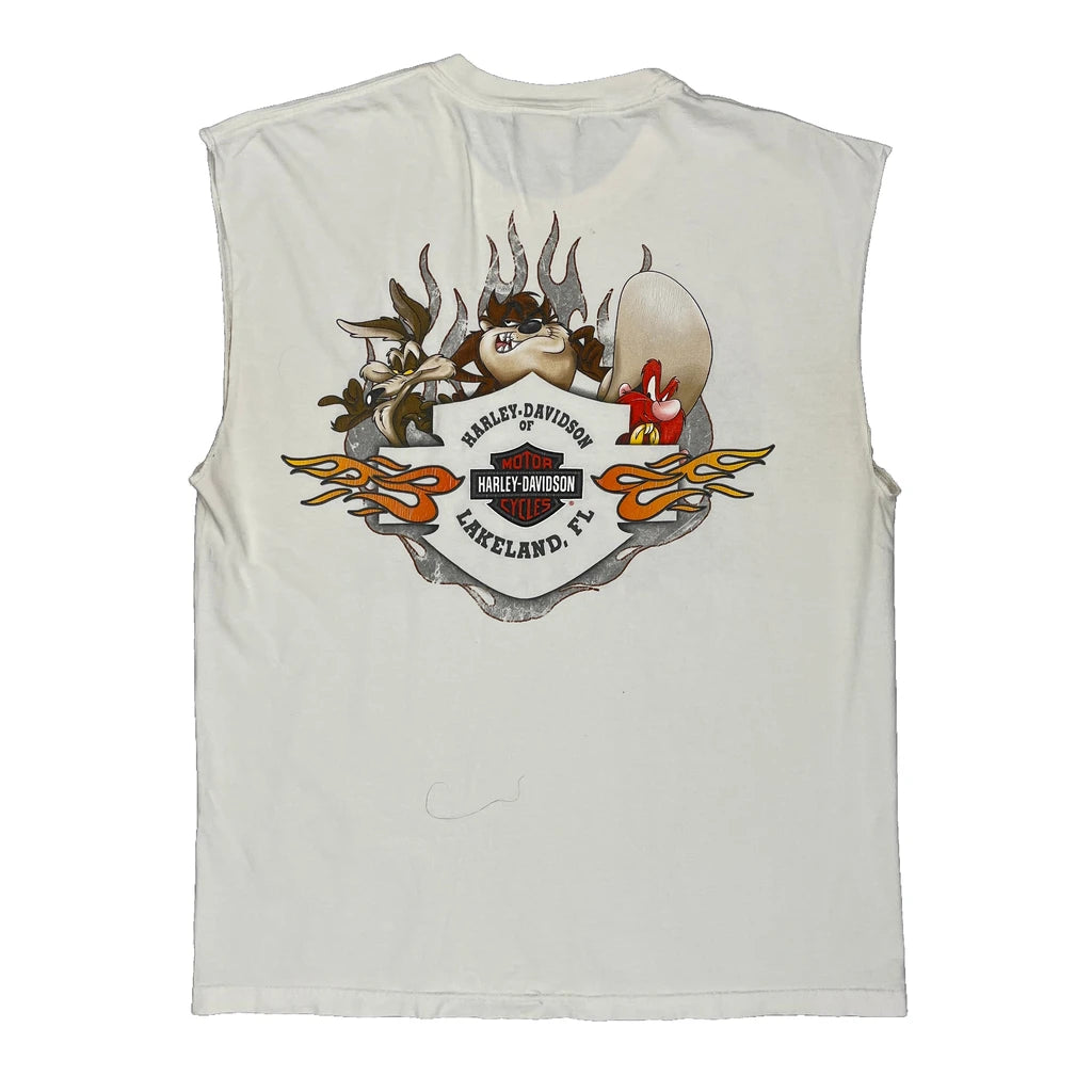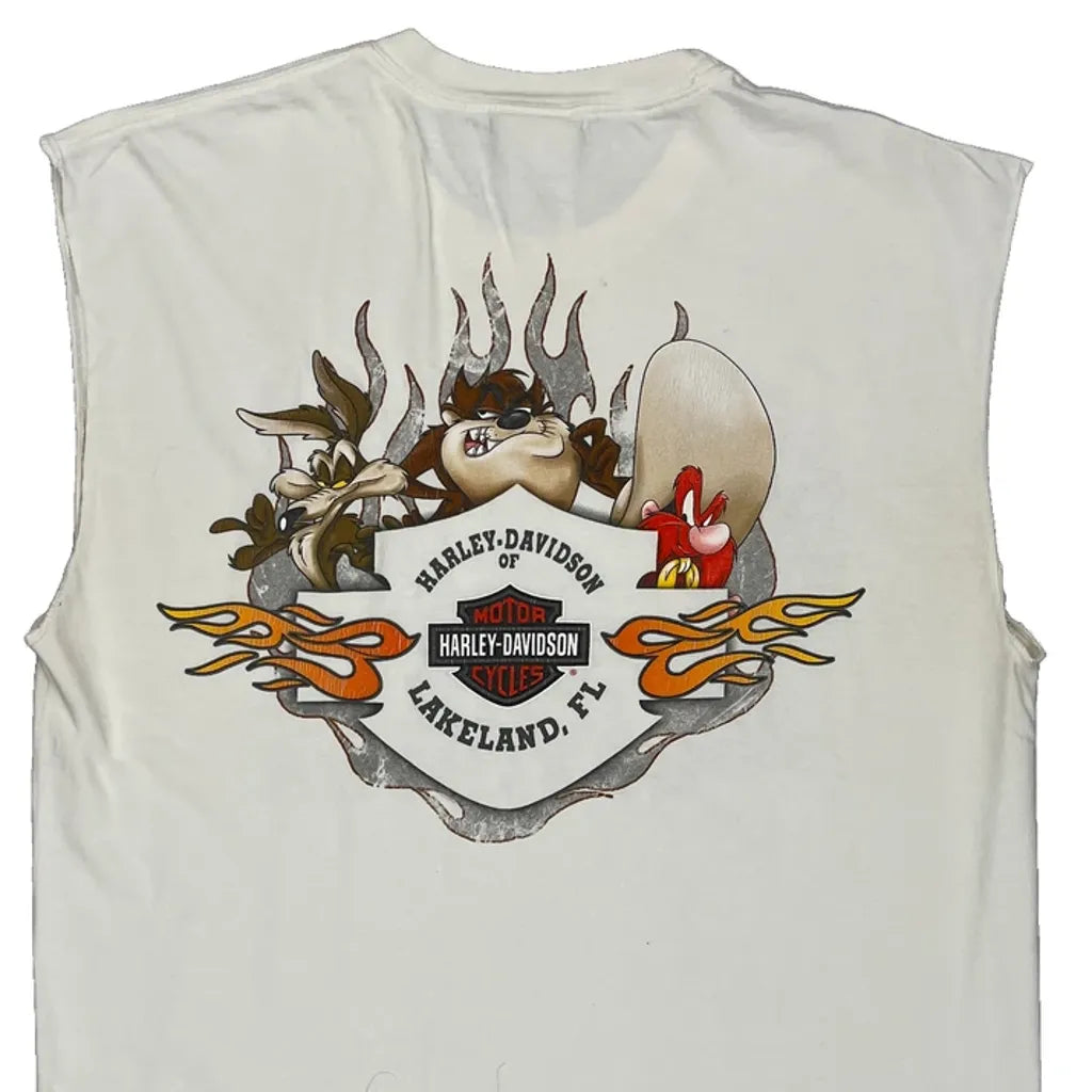 Lakeland, Fl Harley Davidson Cartoon T-Shirt - Large White Cotton