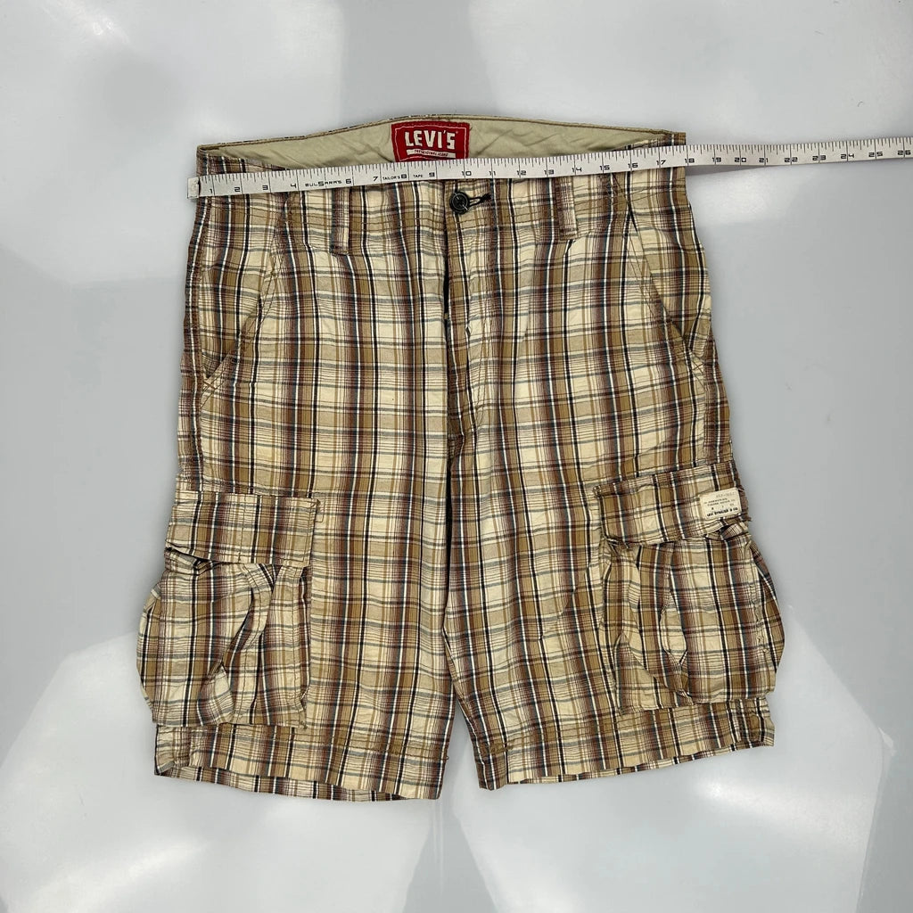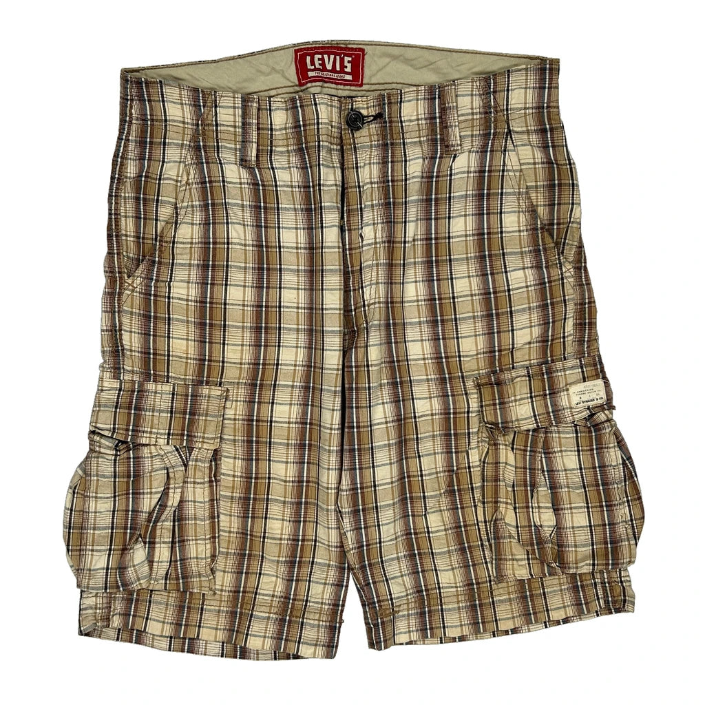 Levis Checked Cargo Shorts - 36W 10L Beige Cotton