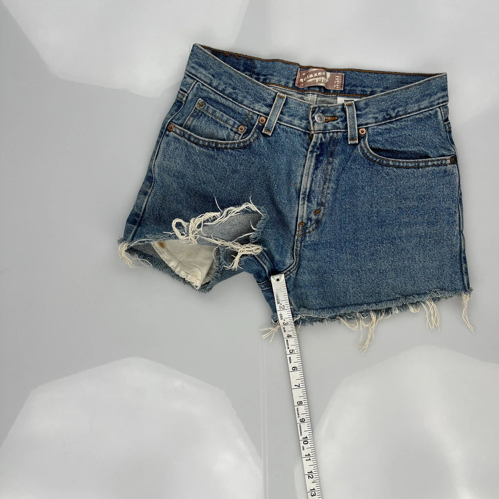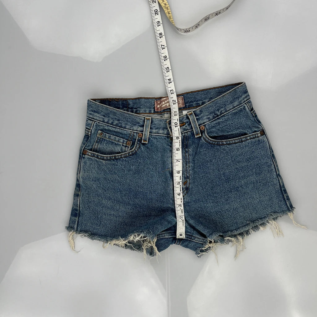 Levis Denim Shorts, fit a UK size 8 with a 28″ Waist.