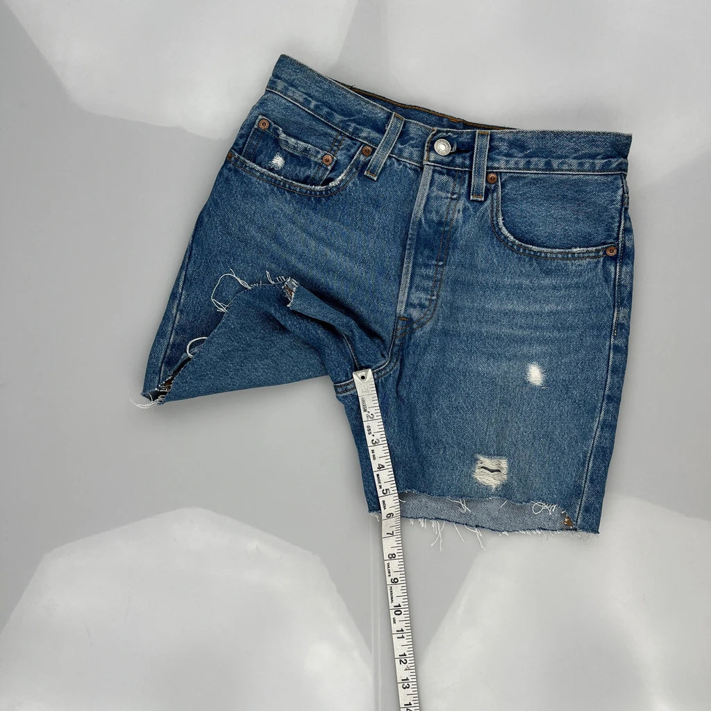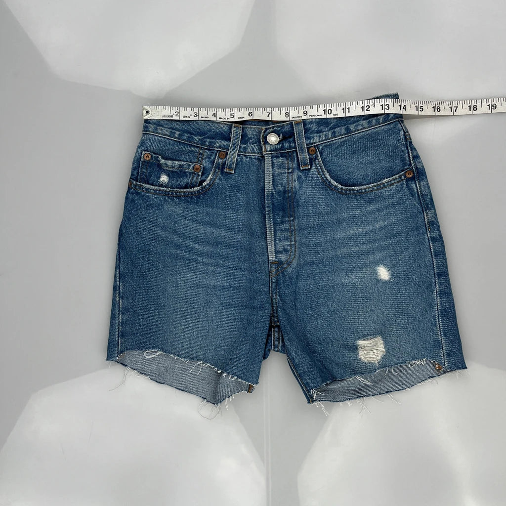 Levis Denim Shorts, fit a UK size 8 with a 28″ Waist.