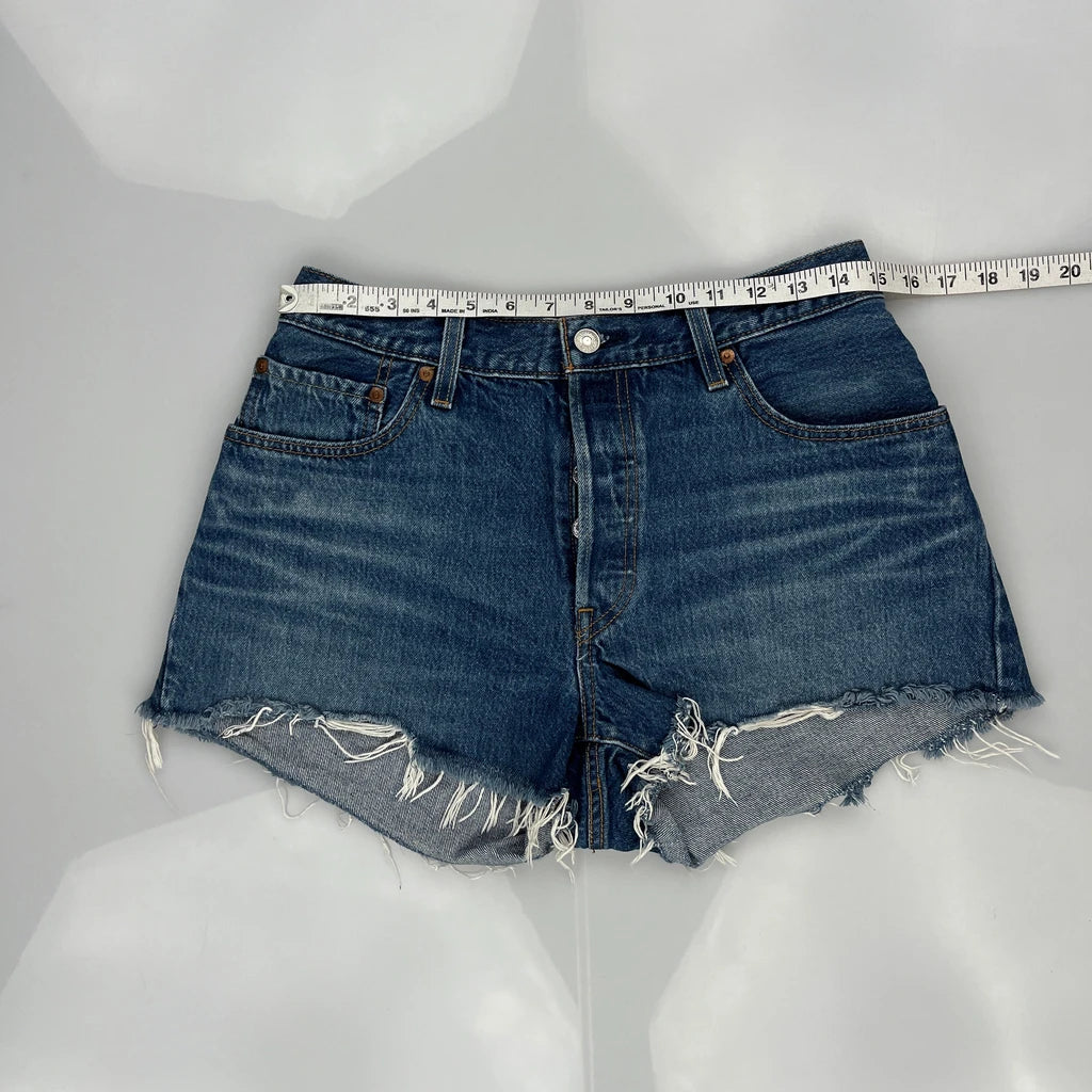 Levis Denim Shorts, fit a UK size 10 with a 30″ Waist.