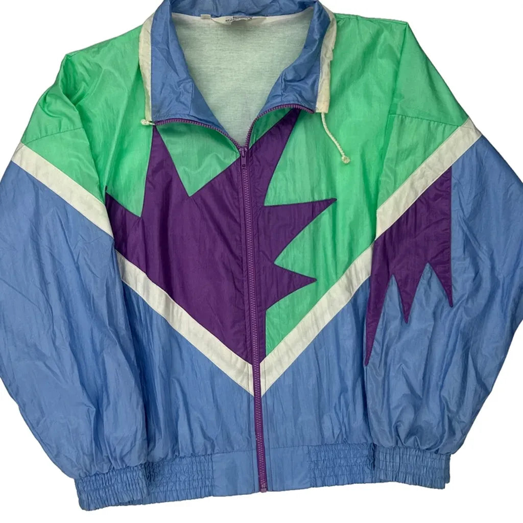 Colorful Retro Windbreaker With Abstract Pattern.
