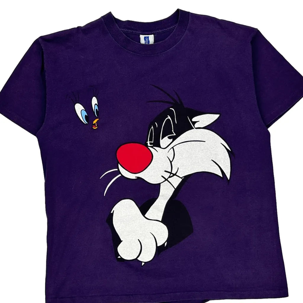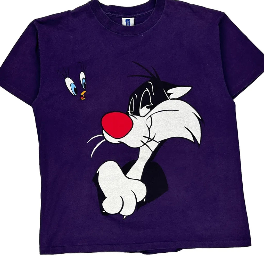 Looney Tunes Six Flags Single Stitch T-Shirt - XL Purple Cotton