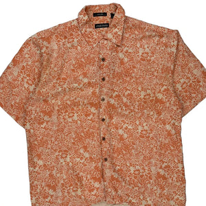 Lord & Taylor Floral Short Sleeve Shirt - XL Orange Silk
