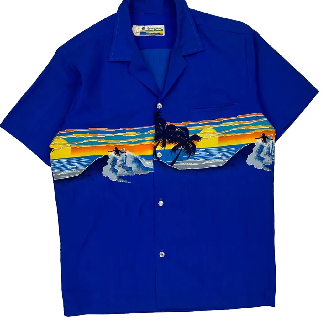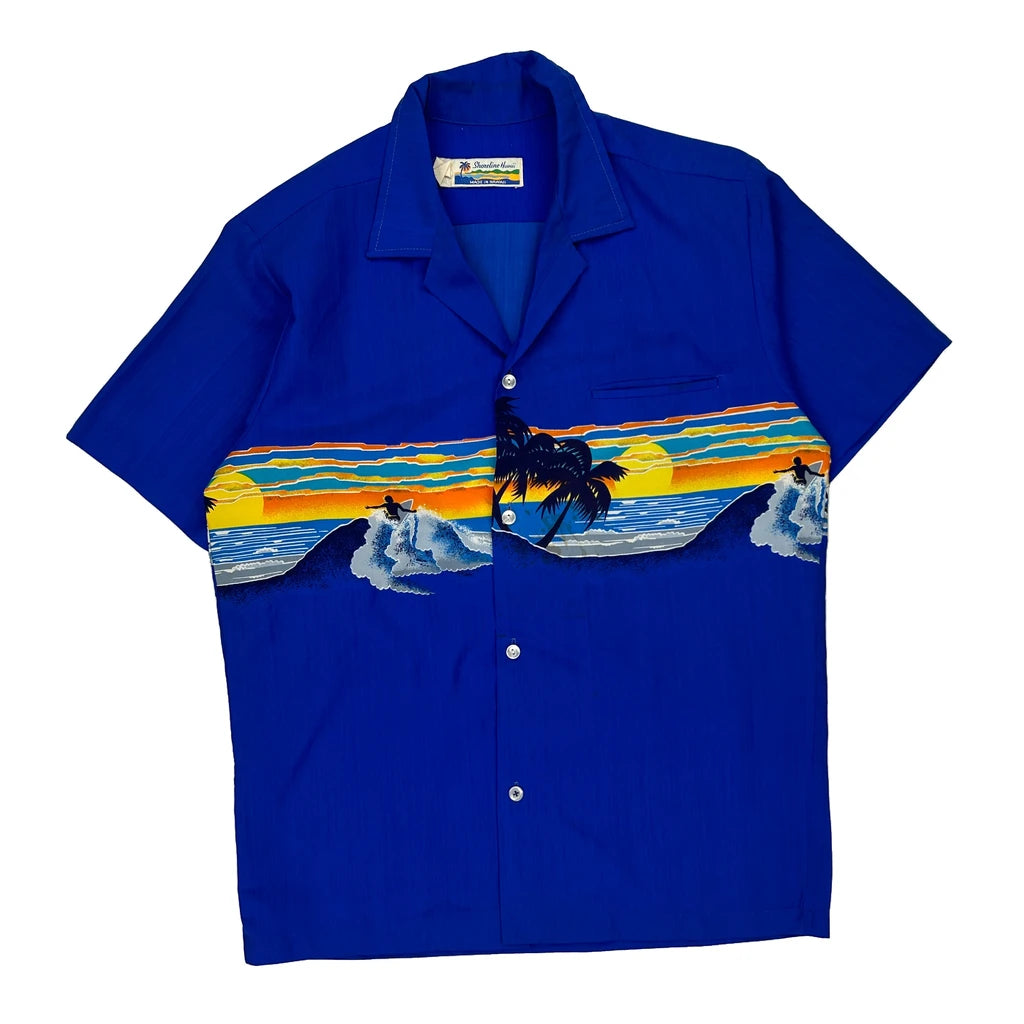 Made In Hawaii Sunset Shoreline Hawaii Graphic Hawaiian Shirt - Medium Blue Polyester
