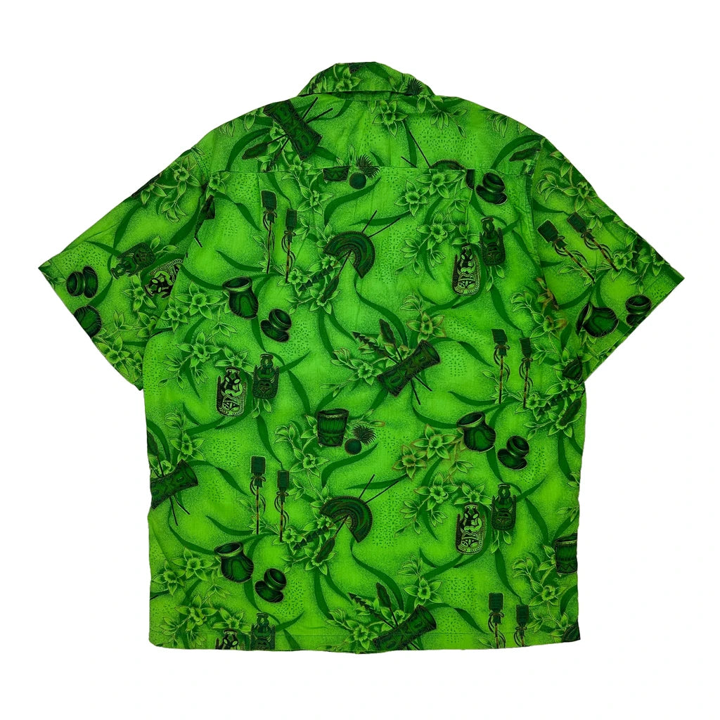 Bright Green Hawaiian Shirt With Tropical Print