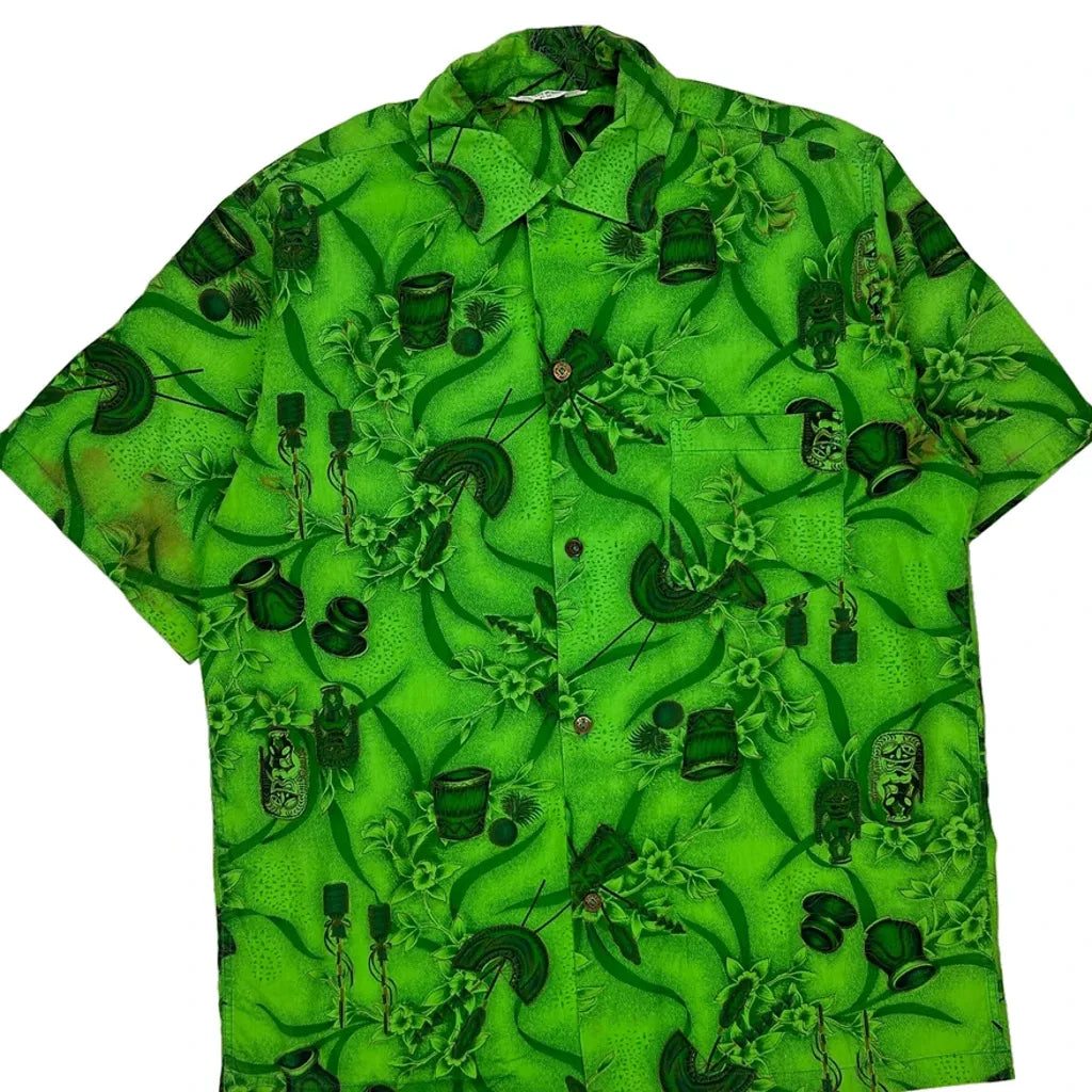 Made In Hawaii Tropical Unbranded Floral Hawaiian Shirt - Medium Green Cotton