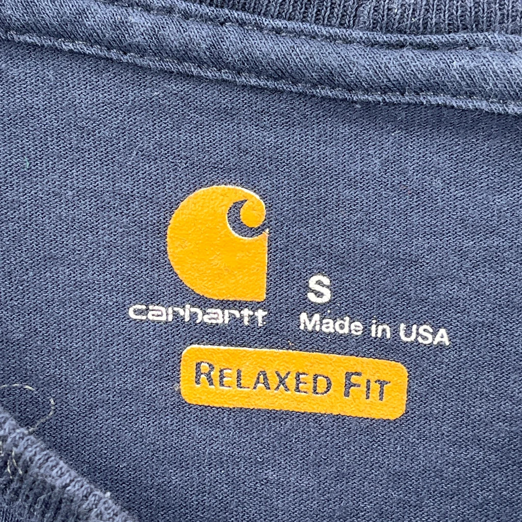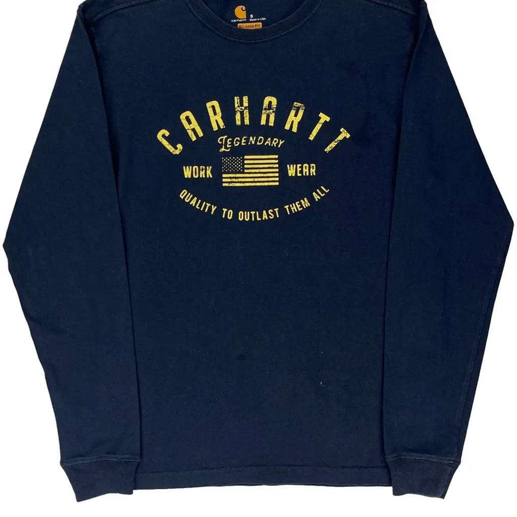 Made In Usa Carhartt Spellout Long Sleeve T-Shirt - Small Navy Cotton