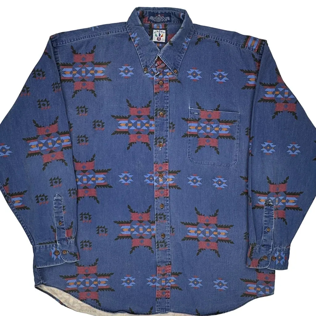 Mareh Patterned Shirt - XL Blue Cotton