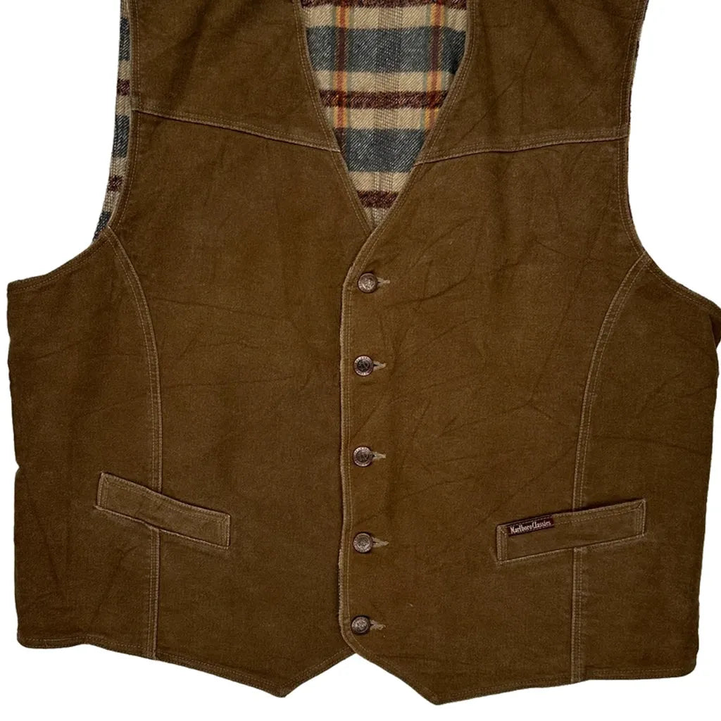 Marlboro Classics Checked Waistcoat - 2XL Brown Cotton