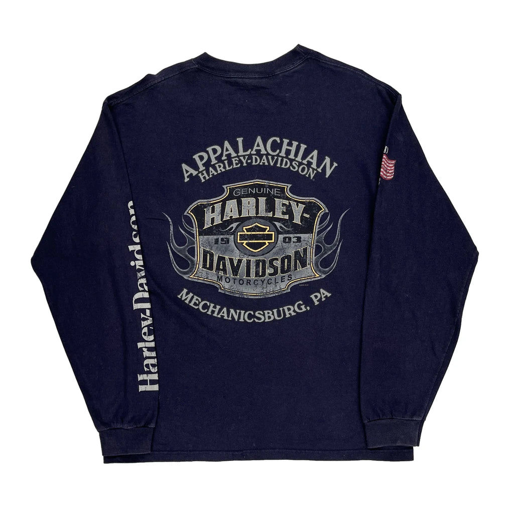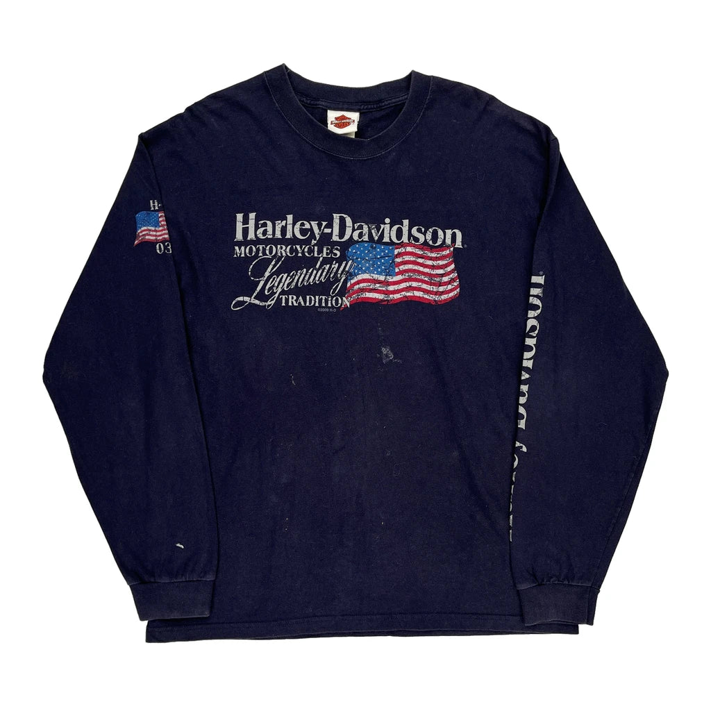 Motorcycles Harley Davidson Graphic Long Sleeve T-Shirt - Large Navy Cotton