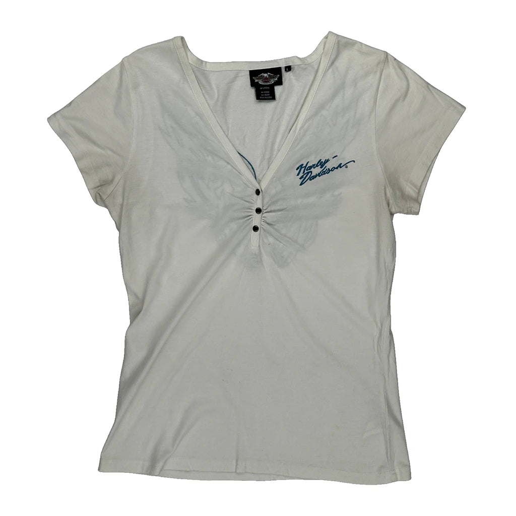 Motorcycles Harley Davidson Graphic T-Shirt - Large White Cotton