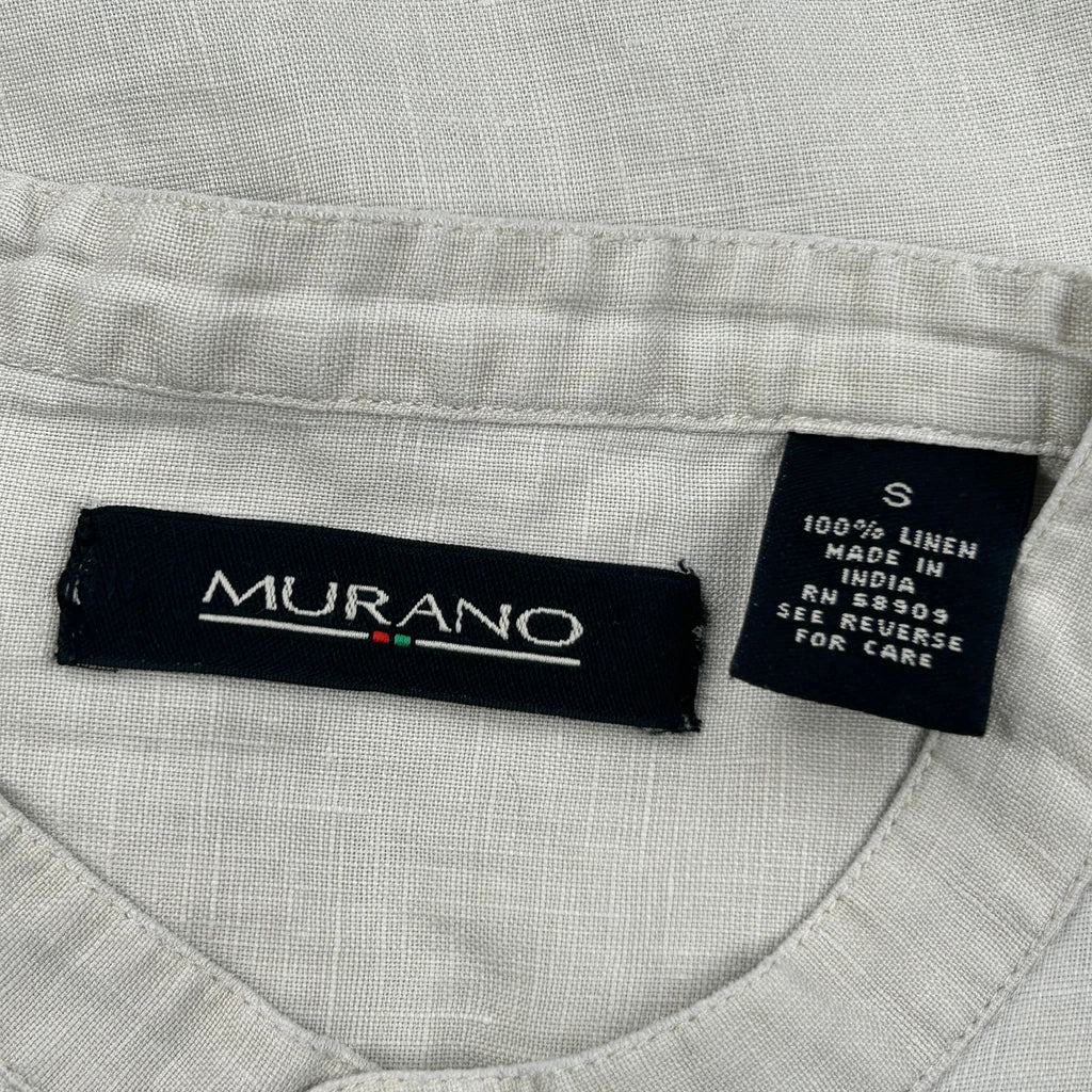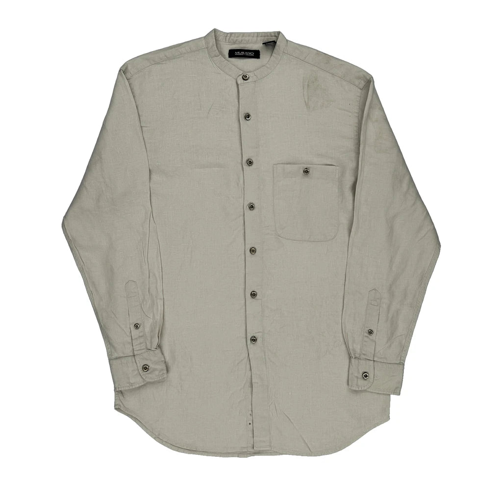 Murano Collarless Shirt - Small Cream Linen