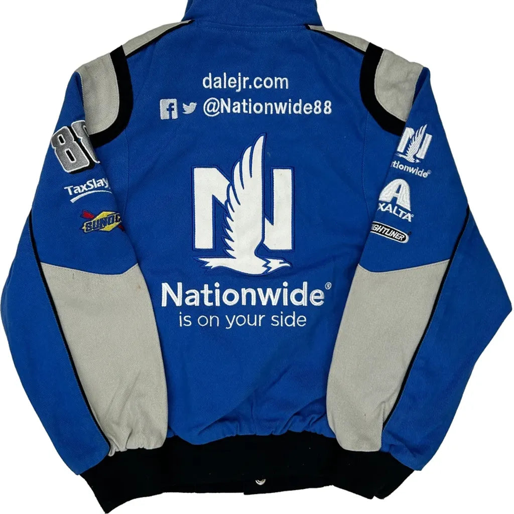 Blue Nascar Bomber Jacket With Nationwide Branding.