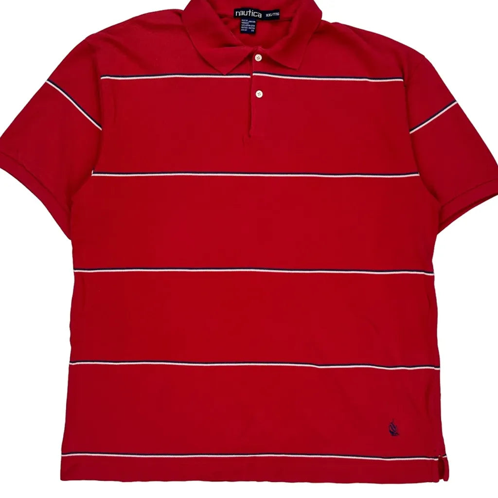Nautica Striped Polo Shirt - 2XL Red Cotton
