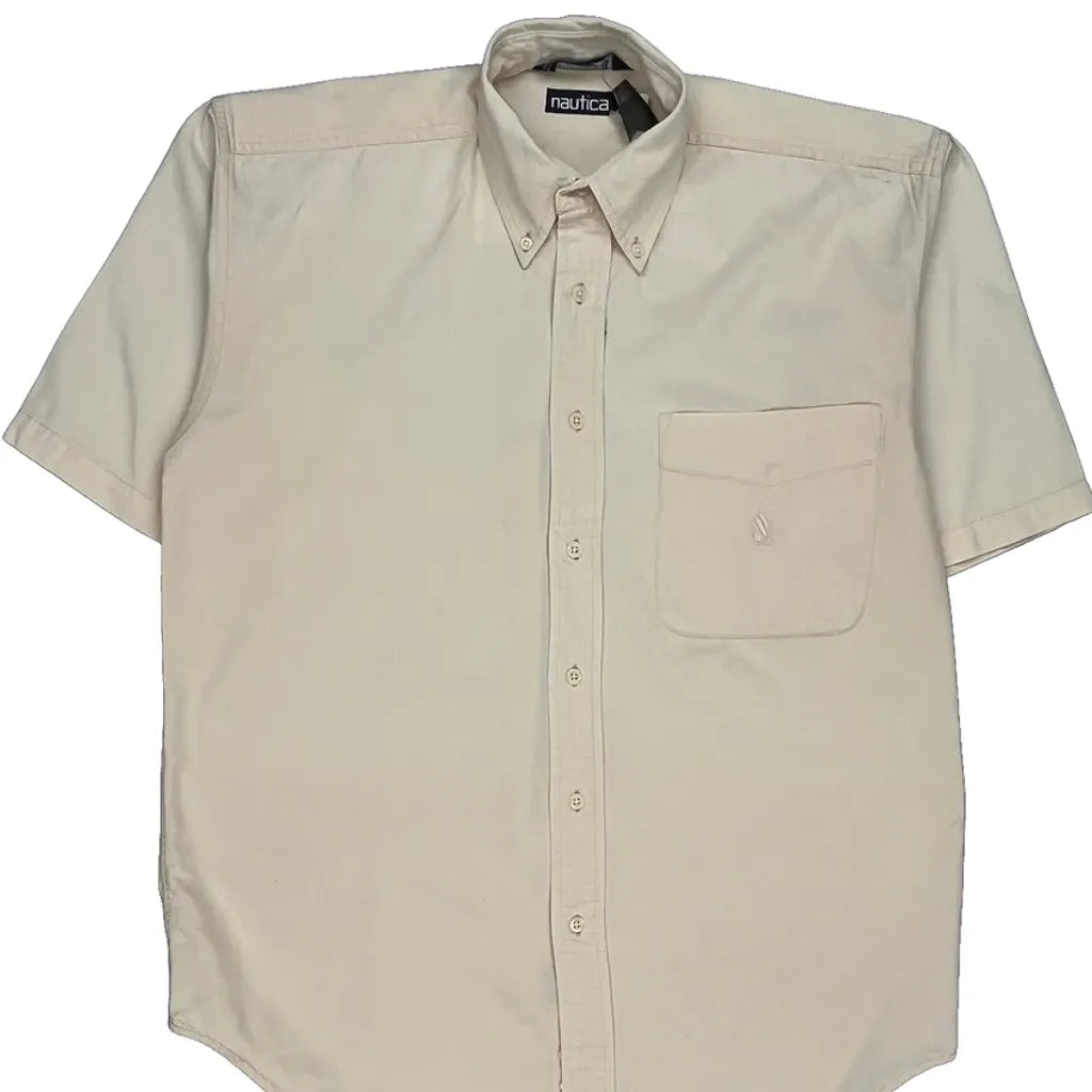 Nautica Short Sleeve Shirt - Small Beige Cotton