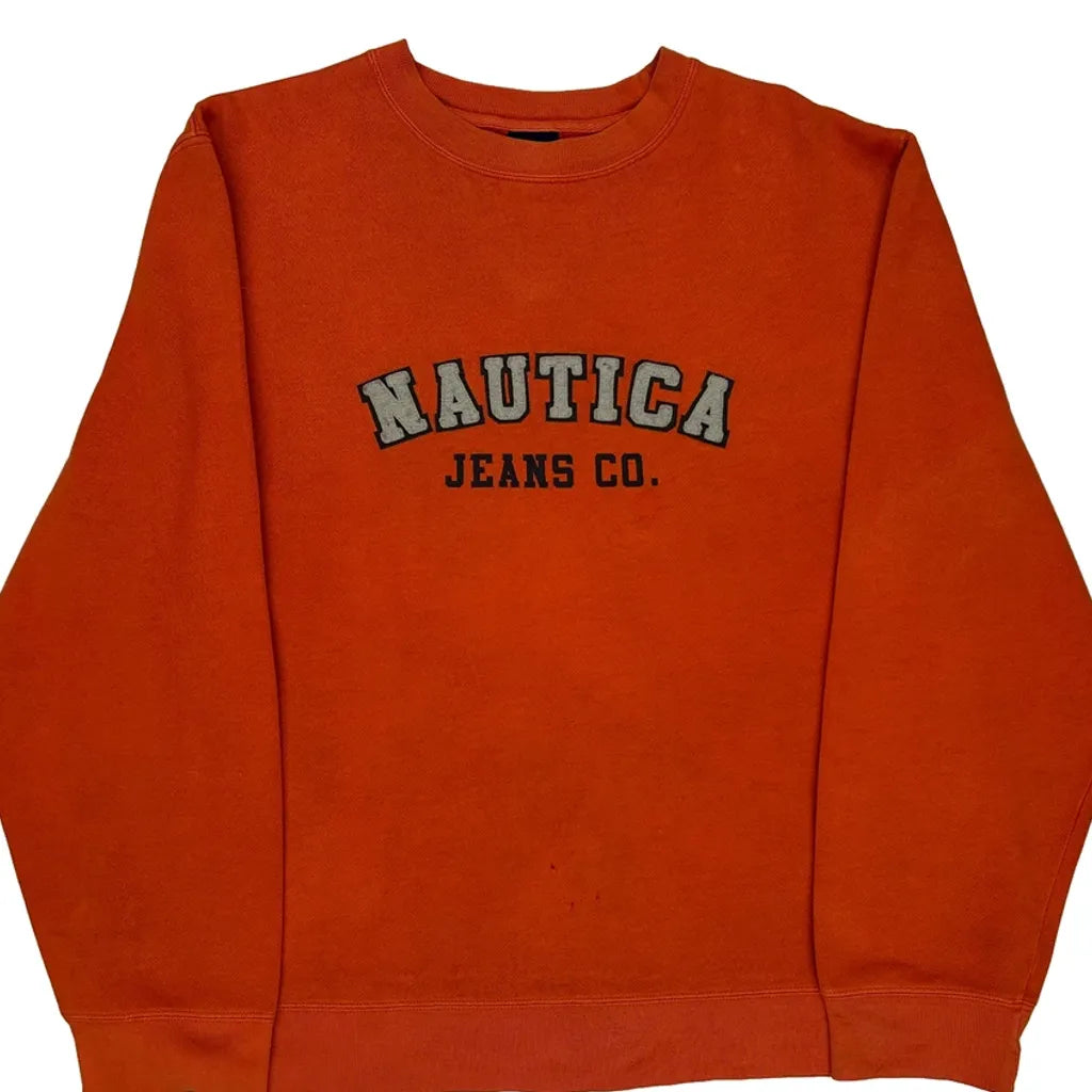 Nautica Spellout Sweatshirt - Large Orange Cotton Blend