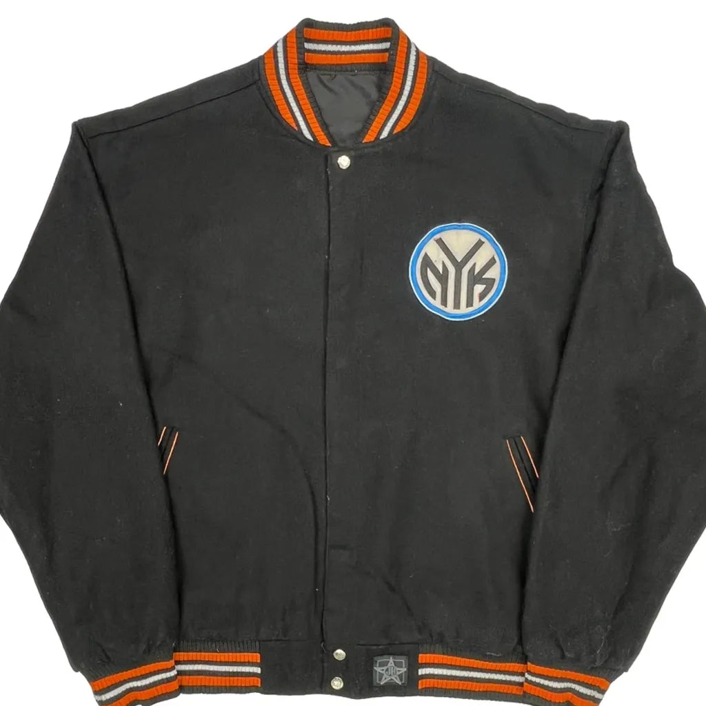 New York Knicks Nba Graphic Varsity Jacket - 4XL Black Cotton Blend